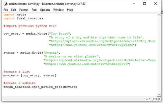 Task: Create a movie website that shows storyline, poster and trailerProgram: Download class, Download instance, Download fresh_tomatoes